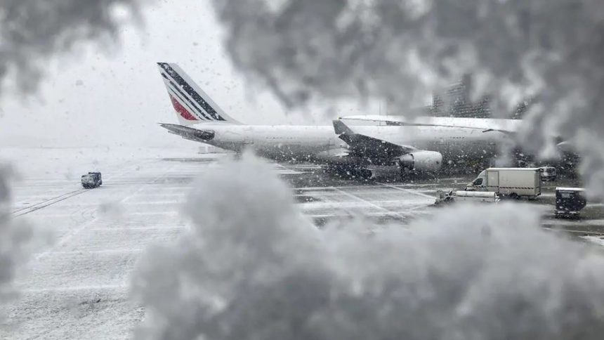 Në kryeqytetin e Francës, autoritetet thanë se aeroporti Roissy-Charles de Gaulle do të anulojë 40% të fluturimeve për disa orë të mërkurën në mëngjes, në mënyrë që stafi të mund të pastrojë borën nga pistat. Aeroporti Orly i kryeqytetit planifikoi të anulojë një të katërtën e fluturimeve të tij gjatë së njëjtës periudhë kohore.