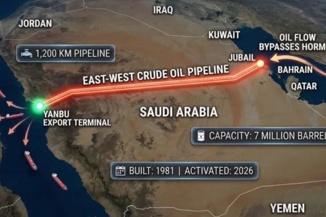 Megjithatë, Arabia Saudite duket se e kishte parashikuar një skenar të tillë dekada më parë. Më saktësisht 45 vite më parë. Që në vitin 1981, ajo ndërtoi një tubacion rreth 1,200 kilometra të gjatë që lidh Jubailin në Gjirin Persik me portin e Yanbu në Detin e Kuq, duke anashkaluar plotësisht Ngushticën e Hormuzit.