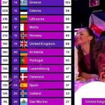 Në vend të dytë u rendit Izraeli me 357 pikë, i ndjekur ngushtë nga Estonia me 356 pikë. Shqipëria u pozicionuar në vendin e 8-të me 218 pikë, prej të cilave 173 pikë erdhën nga publiku. Nga juria, Shqipëria mori 45 pikë, ndërsa pikët maksimale i mori vetëm nga Franca.