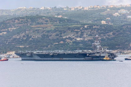 Anija luftarake USS Gerald R. Ford ka mbërritur në Gjirin e Soudës, Kretë, në Greqi për t'iu nënshtruar mirëmbajtjes dhe…