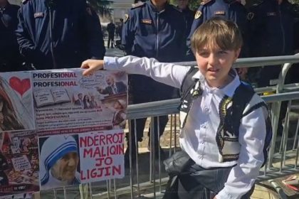 Në protestën e sotme të opozitës ka marrë pjesë edhe një djalë i vogël i cili mbante një pankartë në…