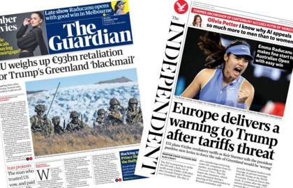 Titujt kryesorë: 'BE-ja shqyrton hakmarrjen prej 93 miliardë eurosh' dhe 'fillimin e shkëlqyer të Raducanu-t' Pasojat e kërcënimit me tarifa…