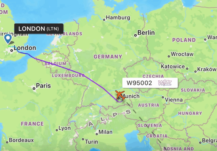 Avioni i nisur nga Luton Airport pritej të mbërrinte në Rinas në orën 10:55, por në Mynih avioni ka devijuar rrugën dhe është kthyer në destinacionin fillestar, Londër.