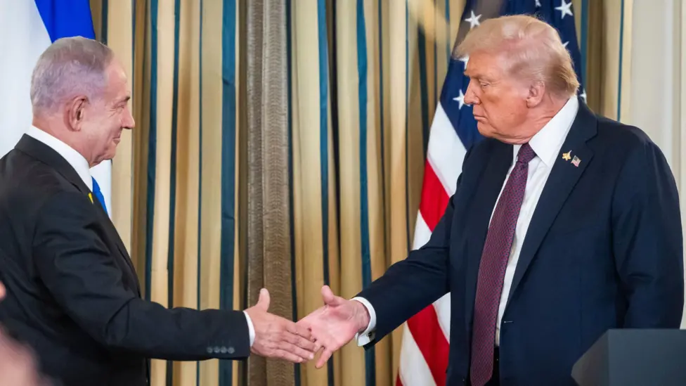 Edhe mendimi i një perspektive të largët të një shteti palestinez ishte i tepërt për Netanyahun, i cili i kishte dhënë mbështetje të plotë Trumpit në Shtëpinë e Bardhë, duke i thënë në anglisht: “Unë mbështes planin tuaj për t’i dhënë fund luftës në Gaza, i cili arrin qëllimet tona të luftës”.