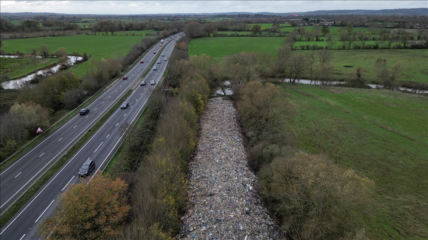 Pamjet e xhiruara nga droni i Anadolu-s shfaqën një linjë prej 150 metrash me mbeturina të paligjshme të depozituara në një fushë përmbytjeje midis lumit dhe autostradës A34 pranë Kidlingtonit.