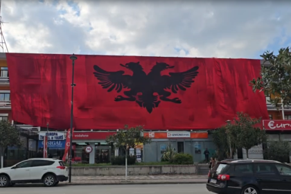 Në zemër të qytetit të Fierit, një flamur gjigant kuqezi është shpalosur mbi një godinë, duke krijuar një pamje mbresëlënëse…