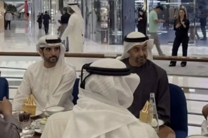 Presidenti i Emirateve të Bashkuara Arabe, Sheikh Mohamed, dhe Sheikh Hamdan bin Mohammed, Princi i Kurorës së Dubait, u panë…