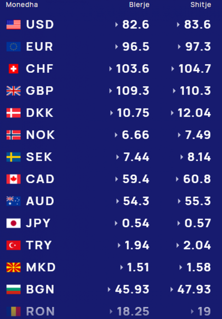 Më poshtë, po sjellim të dhënat e këmbimin valutor, për të gjitha monedhat e huaja: