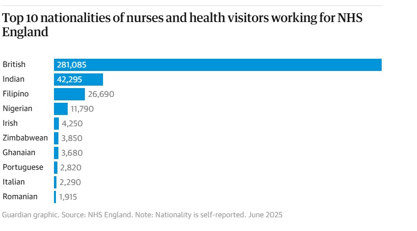 Ekzistojnë më shumë se 200,000 staf infermieror i arsimuar ndërkombëtarisht, rreth 25% e fuqisë punëtore totale të Mbretërisë së Bashkuar prej 794,000. Ndryshimet e propozuara nga qeveria për lejen e qëndrimit të pacaktuar (ILR) kanë shkaktuar alarm, me shumë njerëz që tani po mendojnë të largohen nga Mbretëria e Bashkuar përgjithmonë, sugjeron anketa.