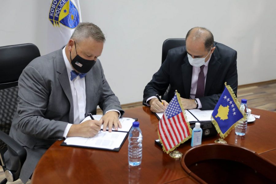 Pranim- dorëzimi i donacionit u nënshkrua nga Drejtori i Përgjithshëm i Policisë së Kosovës Samedin Mehmeti si dhe Shaën Ëaddoups Drejtor i INL.