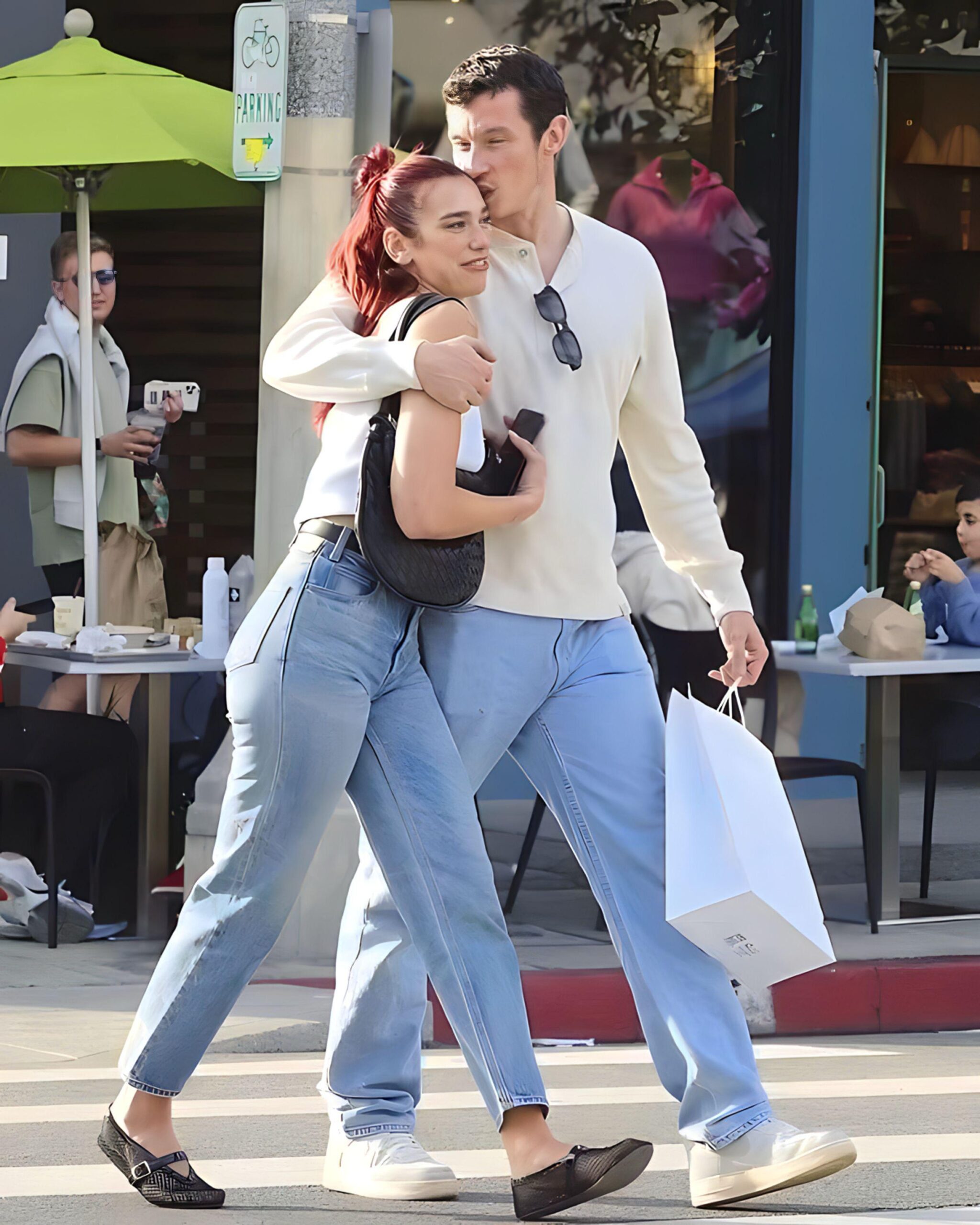 Këngëtarja shqiptare me famë botërore, Duali Lipa dhe i dashuri i saj aktor britanik janë kapur këtë të martë nga paparazi në fshatin Larchmont të Los Anxheles.