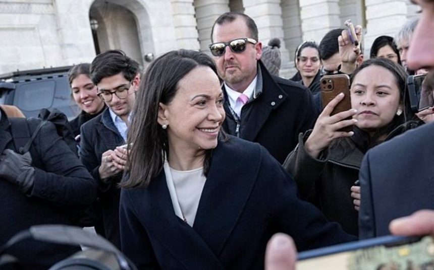 Machado vizitoi gjithashtu Kongresin për t’u takuar me senatorë amerikanë gjatë vizitës së saj në Uashington, ku komentet e saj drejtuar gazetarëve u mbytën nga mbështetësit që brohorisnin “María, presidente” dhe valëvitnin flamuj venezuelianë.