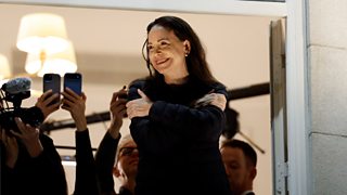 Mbishkrimet e mediave,Shikoni: Momenti kur fituesja e Çmimit Nobel për Paqen, María Corina Machado, shfaqet në ballkonin e Oslos