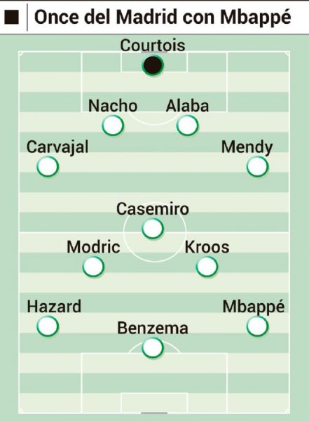 Sipas të përditshmes madrilene, Hazard mudn të mos largohet nga formacioni startues – ai mund të marrë vendin e Bale kurse të tijin ardhja e re, Mbappe, që do të kenë në krah në sulm Karim Benzeman.