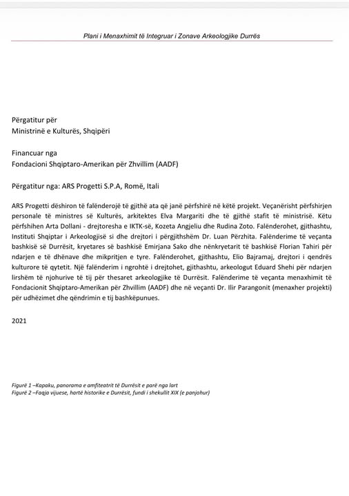 Forumi për Mbrojtjen e Trashëgimisë Kulturore ka publikuar një material të përgatitur në kuadër të Planit të Menaxhimit të Integruar të Zonave Arkeologjike në Durrës, i financuar nga Fondacioni Shqiptaro-Amerikan për Zhvillim (AADF).