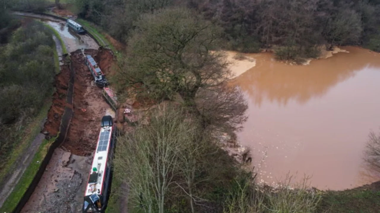 Shërbimet e emergjencës shpallën një incident madhor pasi gropa, rreth 50 metra e gjatë, çau kanalin në West Midlands në Angli, duke lënë disa anije në buzë të një gremine të thellë ose të bllokuara në fund të saj.
