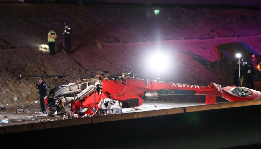 Një helikopter mjekësor është rrëzuar në një pjesë të ngarkuar me trafik të autostradës “50th Avenue” në Sacramento të Kalifornis.