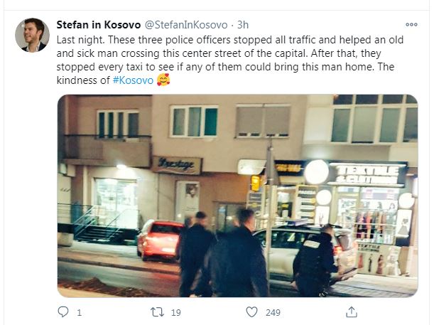 “Pas kësaj ata ndaluan çdo taksi për të parë nëse dikush prej tyre mund ta dërgonte këtë njeri në shtëpi. Mirësia e Kosovës”, shkroi tutje ai.