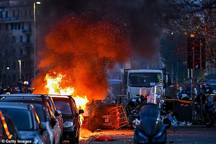 Sipas mediave italiane, tifozët dyshohet se përdorën kokteje Molotov, bomba tymuese, fishekzjarrë dhe shishe, ndërsa disa mjete u përfshinë nga flakët në rrugët përreth stadiumit, përfshirë një furgon dhe një skuter.