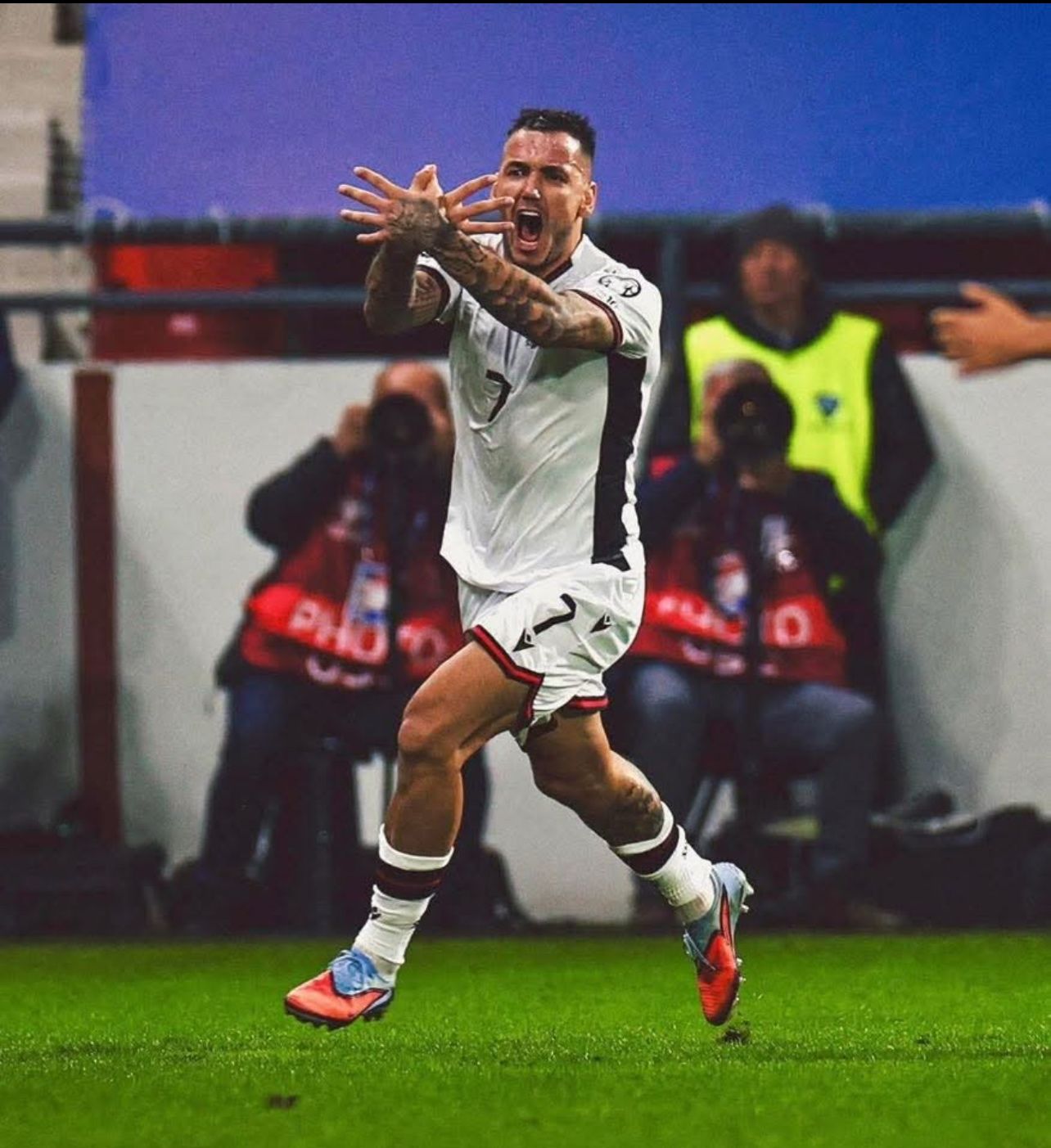 Gëzimi i tij u shpreh natyrshëm: fluturoi duke formuar me duar shqiponjën dykrenare. Ky gjest, një simbol krenarie dhe kujtesë për origjinën, u fiksua në foto, në mendjen e shqiptarëve dhe, pak sekonda më pas, u ndëshkua me karton të verdhë.