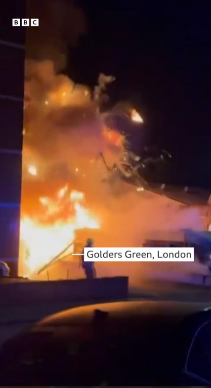 Katër ambulanca Hatzola u gjetën në flakë pasi Brigada e Zjarrfikësve të Londrës u thirr në Highfield Road në Golders Green rreth orës 01:40 GMT.