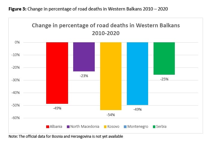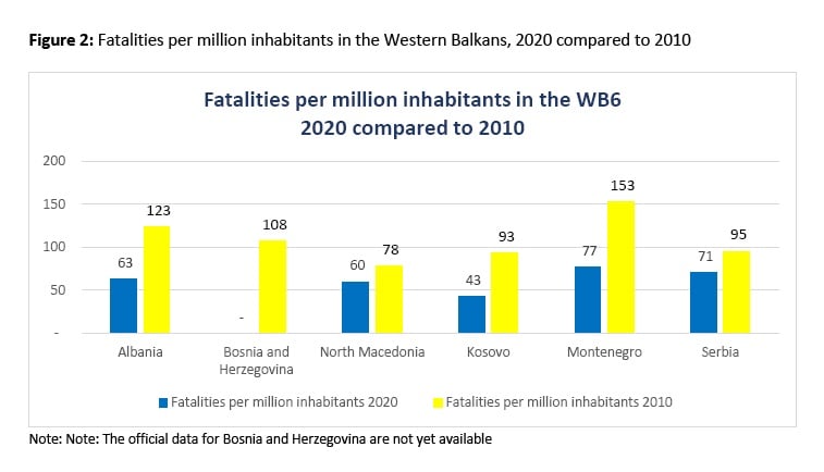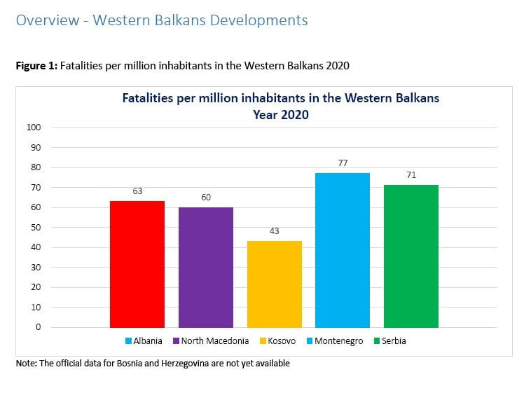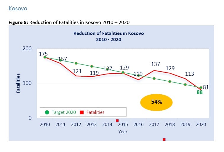 “Sipas raportit “Fatalities for 2020 – Annual Statistics for Western Balkans” në të cilin janë analizuar statistikat e aksidenteve me vendet e Ballkanit Perëndimor i publikuar me datë 20.04.2021, për vdekjet në aksidentet e trafikut rrugor për vitin 2020 dhe krahasimin 2010-2020 për 1 milion banorë, vërehet se vendi ynë (Kosova) krahasuar me vendet e Ballkanit Perëndimor, ka më së paku vdekje për 1 milion banorë.