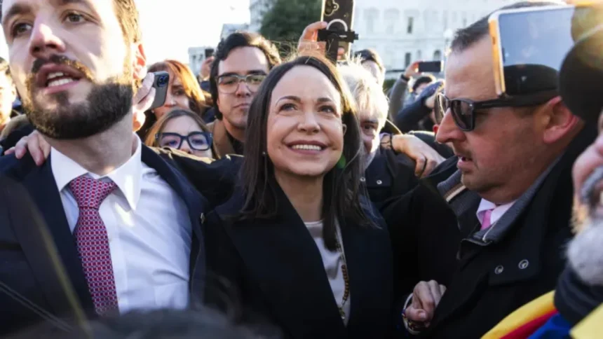 Machado tha se dëshiron të shërbejë në vendin ku mund të jetë më e dobishme dhe se ka një mandat nga populli, ndërsa mbështetësit e saj në Uashington brohorisnin “María, presidente” dhe valëviteshin flamuj venezuelianë gjatë takimeve me ligjvënësit amerikanë.