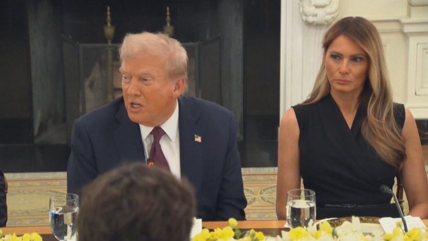 “Zonja e Parë, Melania, është këtu. Shikojeni Melanian, kaq e bukur. Zonja Trump, ju keni një shkëlqim si i një vejushe të ardhshme.”