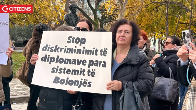 Mësues dhe punonjës të sistemit arsimor protestuan mesditën e së enjtes para Kuvendit. Ata drejtuan dy kërkesa kryesore: rikthimin e pagës së 13-të dhe ndalimin e diferencimin në rroga mes arsimtarëve që janë diplomuar para dhe pas sistemit të Bolonjës.