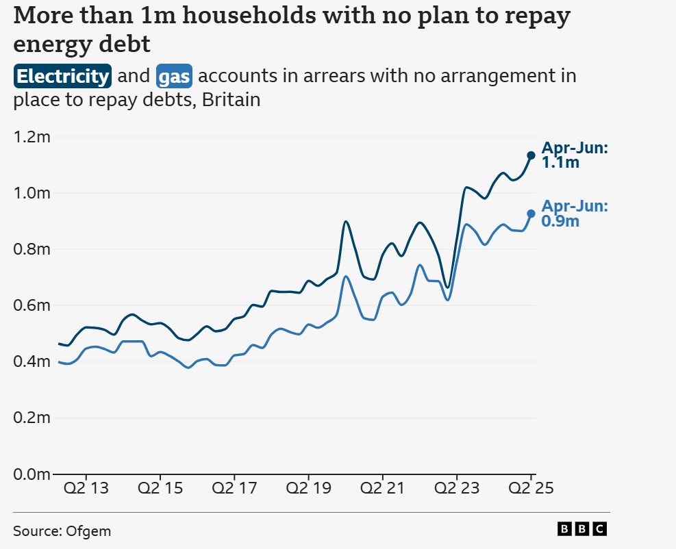Faturat dhe tarifat e papaguara janë rritur ndjeshëm vitet e fundit me çmimet kaq të larta të energjisë, duke lënë një shumë rekord prej 4.4 miliardë paundësh borxh ndaj furnizuesve.
