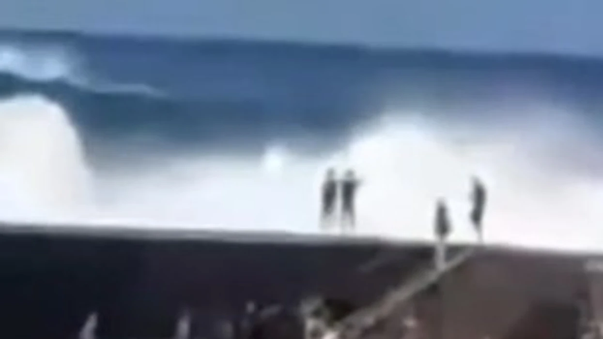 Ky thuhet të jetë momenti i tmerrshëm kur një valë gjigante u përplas mbi kalimtarët – duke vrarë një dhe duke lënduar nëntë të tjerë ndërsa një valë baticash goditi Tenerifen.