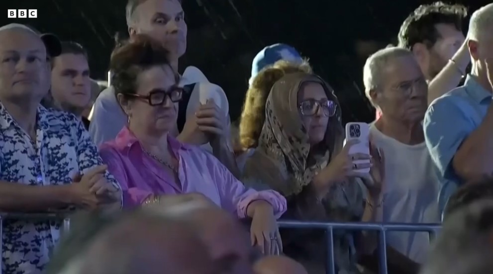 Ndërsa Albanese mbërriti për ceremoninë, një person në turmë bërtiti: “Gjak në duart tuaja”.