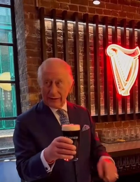 Një moment për Mbretin Çarls duke shkundur nga mustaqet e tij birrën Guinness! (video)