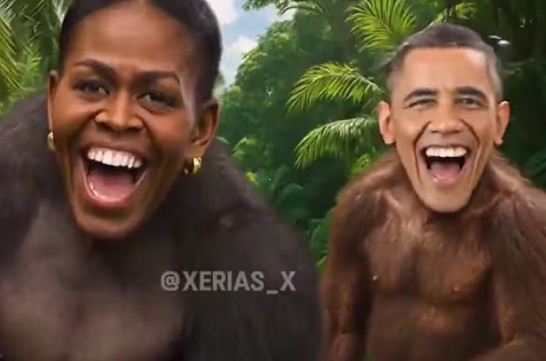 Klipi sjell në mendje karikatura raciste që krahasojnë njerëzit me ngjyrë me majmunët dhe duket se është marrë nga një postim i X i ndarë nga krijuesi konservator i memeve Xerias në tetor.