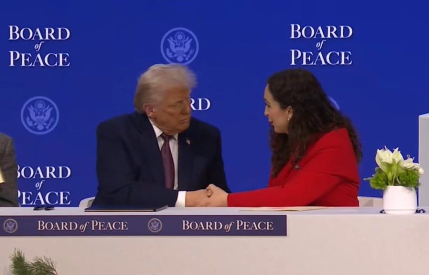 Presidentja e Kosovës, Vjosa Osmani, nënshkroi bashkë me Donald Trump dhe liderë të tjerë botërorë, themelimin e Bordit të Paqes, në një ceremoni të organizuar në Davos të Zvicrës.