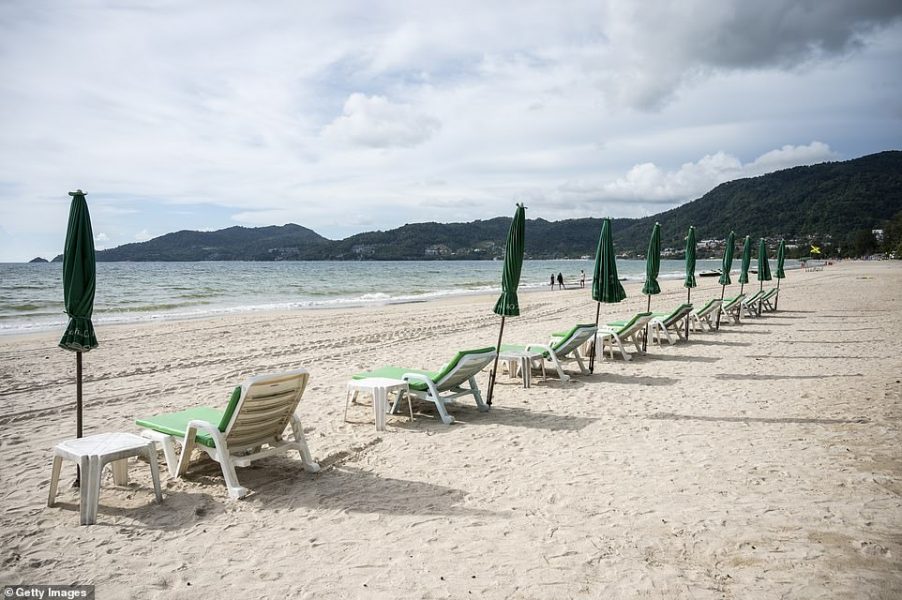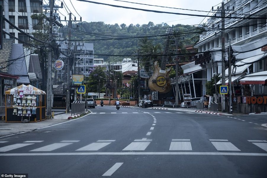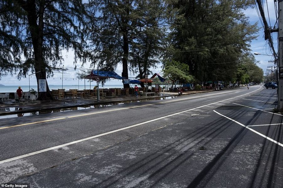 Në fotografitë që u bënë të mërkurën shihet plazhi i famshëm “Patong”, që në kohëra normale ka turistë lokalë e të huaj. Tash ky vend ka mbetur pothuajse bosh. Rrugët janë pa vetura dhe kafenetë janë mbyllur për shkak të masave kufizuese.