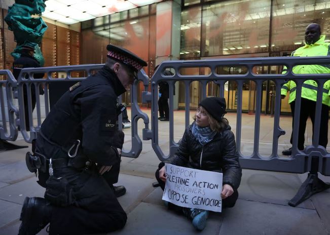 Prisoners for Palestine, që mbështet disa aktivistë të ndaluar të cilët kanë hyrë në grevë urie, tha se ndërtesa ishte shënjestruar sepse përdorej nga një kompani sigurimesh që, sipas tyre, ofronte shërbime për degën britanike të firmës izraelite të mbrojtjes Elbit Systems.