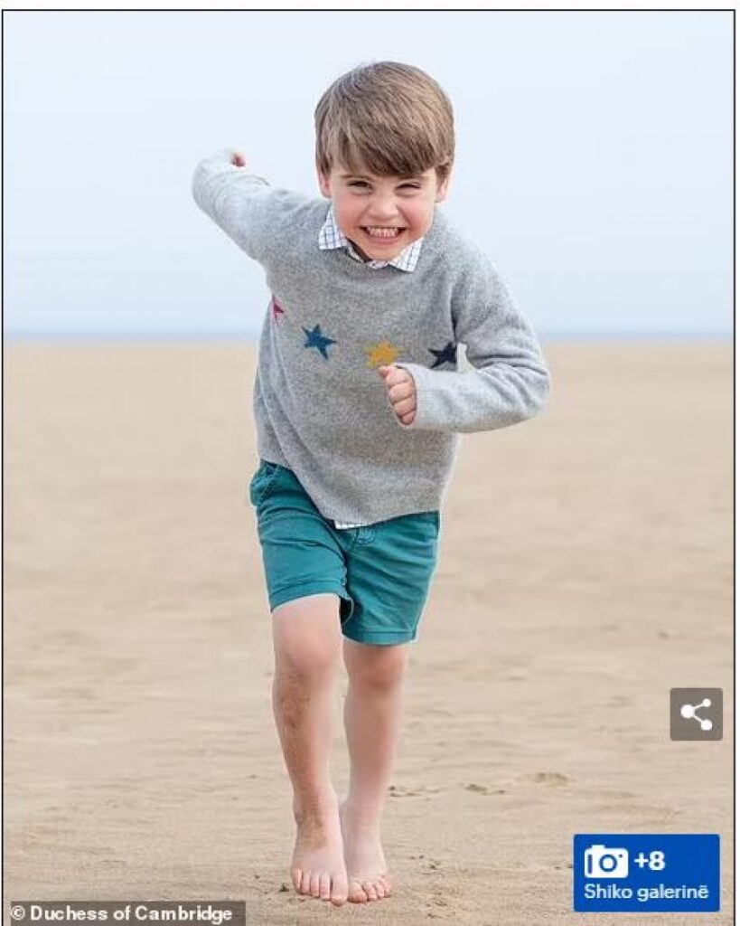 Duka dhe Dukesha e Kembrixhit postuan dy foto të Louis në llogarinë e tyre të përbashkët në Instagram, duke treguar princin duke buzëqeshur në një plazh në Norfolk, Angli.
