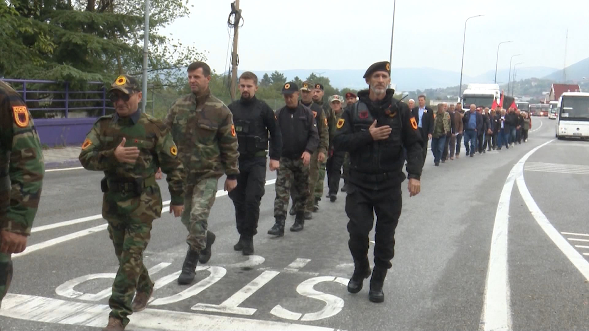 Ish-luftëtarë të Ushtrisë Çlirimtare të Kosovës, veteranë të luftës dhe qytetarë nga trojet mbarëshqiptare parakaluan në mënyrë simbolike për të kaluar kufirin në Morinë drejt Tiranës, ku do të marrin pjesë në protestën gjithëkombëtare në orën 17:00 në sheshin “Skënderbej”.