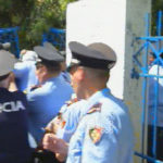 Policia është përleshur me ta dhe nuk lejon që ata të hyjnë brenda.