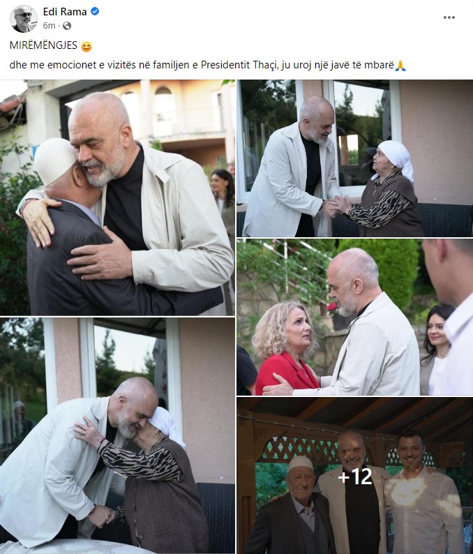 E sot, kryeministri Rama ka shpërndarë disa fotografi nga ky takim, ku ka shkruar “Mirëmengjes dhe me emocionet e vizitës në familjen e Presidentit Thaçi, ju uroj një javë të mbarë”.