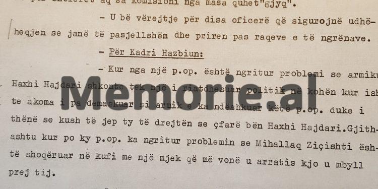 Po kështu, këto mbledhje u intesifikuan së tepërmi, sidomos pas tetorit të vitit 1982, kur u arrestua dhe Ministri i Mbrojtjes Kadri Hazbiu, (i cili për gati tre dekada me rradhë kishte mbajtur postin delikat të Ministrit të Brendshëm), ku dhe ndaj tij, u përsërit e njëjta tablo, si me ish-kryeministrin Mehmet Shehu. Dhe pas zhvillimit të këtyre mbledhjeve, komitetet e partisë të rretheve përkatëse, kanë hartuar një sërë raportesh me përmbledhje nga “problemet më kryesore”, të cilat më pas ia kanë dërguar Komitetit Qëndror të PPSH-së. Për të gjitha këto mbledhje, redaksia e Memorie.al, disponon një numër të madh dokumentesh të nxjerra nga një dosje voluminoze me siglën “Tepër sekret”, ku ish-anëtarë të Byrosë Politike, sekretarë të Komitetit Qëndror të asaj kohe, si Spiro Koleka, Enver Halili, Vangjel Çerrava etj., informojnë Komitetin Qëndror për mbledhjet ku kanë marrë pjesë, duke dhënë me detaje dhe hollësira gjithçka është thënë dhe diskutuar aty. Po kështu përveç këtyre raporteve, në dosjen në fjalë gjenden edhe një sërë raportesh të hartuara nga funksionarë të rangjeve më të ulta që nga Komiteti Qëndror e më poshtë, apo dhe raporte kolegjiale të Degëve të Punëve të Brendëshme në rrethe, shtabeve, komandave dhe komiteteve të partisë së korpusve ushtarake, që ishin edhe njësitë më të mëdha që kishte ushtria shqiptare asokohe.