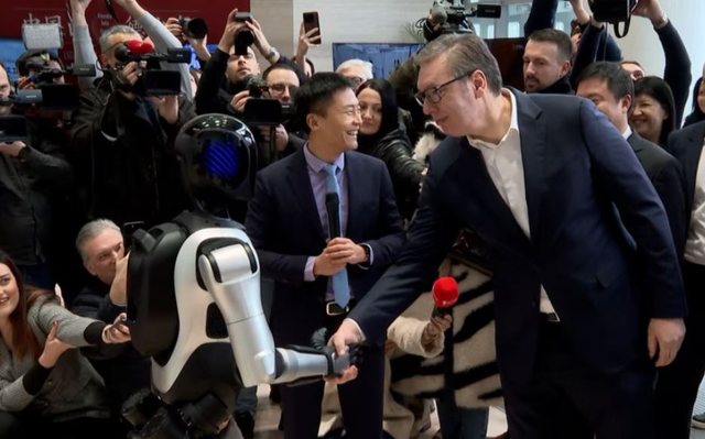 Atë ditë, ai u përshëndet edhe me Luka-n, një robot humanoid kinez, i cili u prezantua nga kompanitë Minth Group dhe AGIBOT Innovation në Qendrën Kulturore Kineze në Beograd.