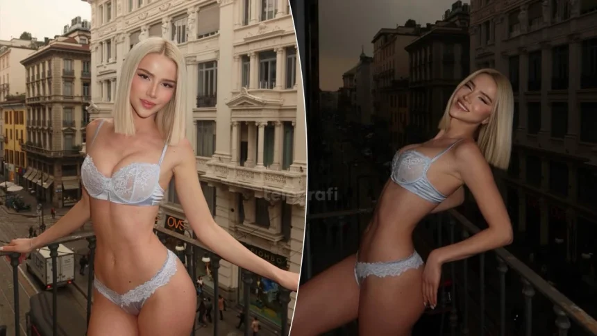 Ajo ka publikuar disa fotografi nga Milano, ku shfaqet në një ballkon me pamje nga qyteti, ndërsa pozon me një set elegant të të brendshmeve me ngjyrë të hapur.