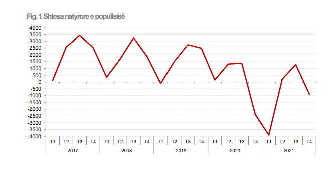 Shtesa natyrore e popullsisë në tremujorin e katërt 2021 tregon se janë 898 vdekje më shumë se sa lindje. Ndërsa në të gjithë vitin 2021 shtesa natyrore ishte 3.296 vdekje më shumë se sa lindje. Shqipëria është karakterizuar nga shtesë natyrore pozitive ndër vite. Shtesa natyrore negative për vitin 2021 është ndikuar edhe nga situata e pandemisë Covid-19, raportoi INSTAT.