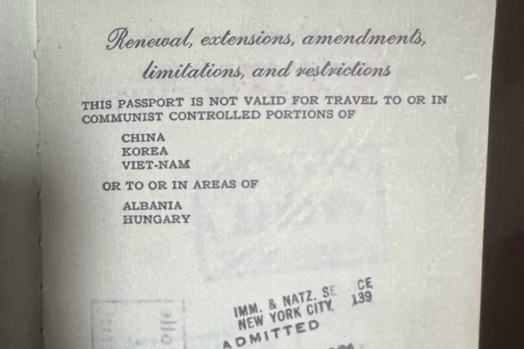Në rrjetet sociale po qarkullon një foto e një pasaporte amerikane të përdorur në fillimet e viteve 1960, e cila na prezanton me një dëshmi të qartë të tensioneve gjeopolitike që shënuan periudhën e Luftës së Ftohtë, që e ndau botën në dy blloqe.