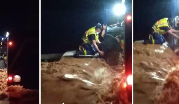 Sikur duket edhe nga video, Temali ka dalë nga kamioni duke hipur mbi kabinën e makinës së ishte mbuluar nga uji dhe me një kaçavidë ka thyer xhamin e derës së shoferit për të shpëtuar drejtuesin e makinës që ishte mbuluar nga vërshimi.