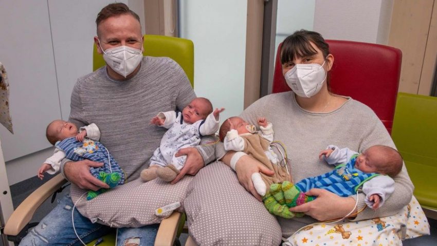 Valmir Bytyqi dhe Michaela Seidl janë bërë prindër të katërnjakëve në Spitalin Universitar të Augsburgut.