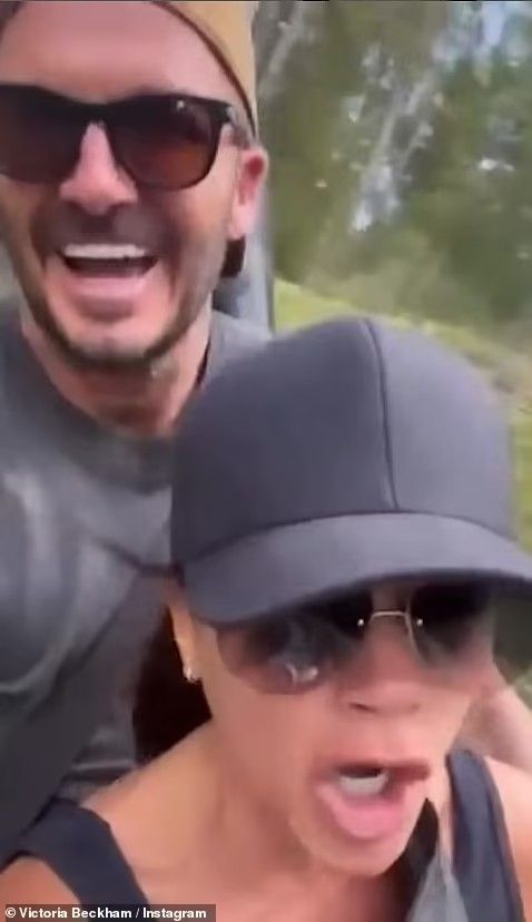 Në montazhin e ndarë me ndjekësit, David shihet në forma të ndryshme – pa bluzë, duke ushtruar, madje edhe i veshur si personazh nga “The Incredibles”, duke treguar muskujt e tij të njohur. Një tjetër moment gazmor e shfaq çiftin duke rrëshqitur në një tobogan me shpejtësi, teksa Victoria bërtet “Ndal!”.
