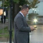 E veshur me një fustan me ngjyrat e flamurit të Kroacisë dhe buzët e kuqe, ajo rrëmbeu vëmendjen e të gjithëve.
